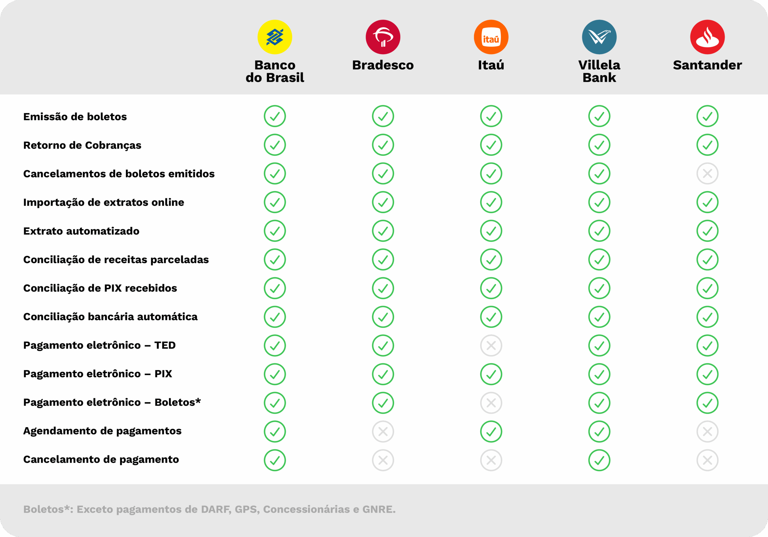 (Consulte a tabela comparativa para funcionalidades por banco)